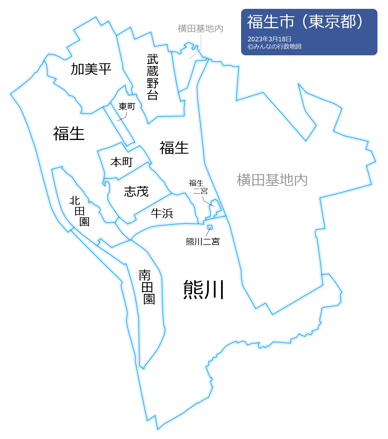 牛浜/加美平/北田園/熊川/熊川二宮/志茂/東町/福生/福生二宮/本町/南田園/武蔵野台